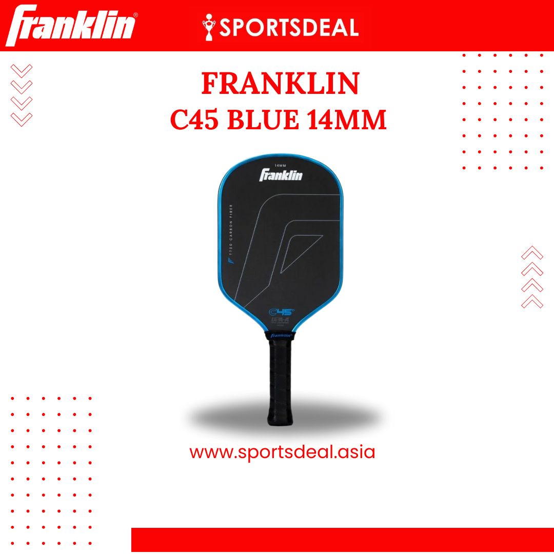 Franklin Sports is continuing to raise the bar for competitive pickleball by introducing the all new C45 Carbon Fiber Paddle. Featuring a 14mm thick core, this paddle features an elongated 5.7in handle with 4.3in handle circumference (weight range 7.6-7.9oz). The C45 is a hybrid paddle that offers a multitude of different technologies, giving each player a combination of supreme control and full power on the court.