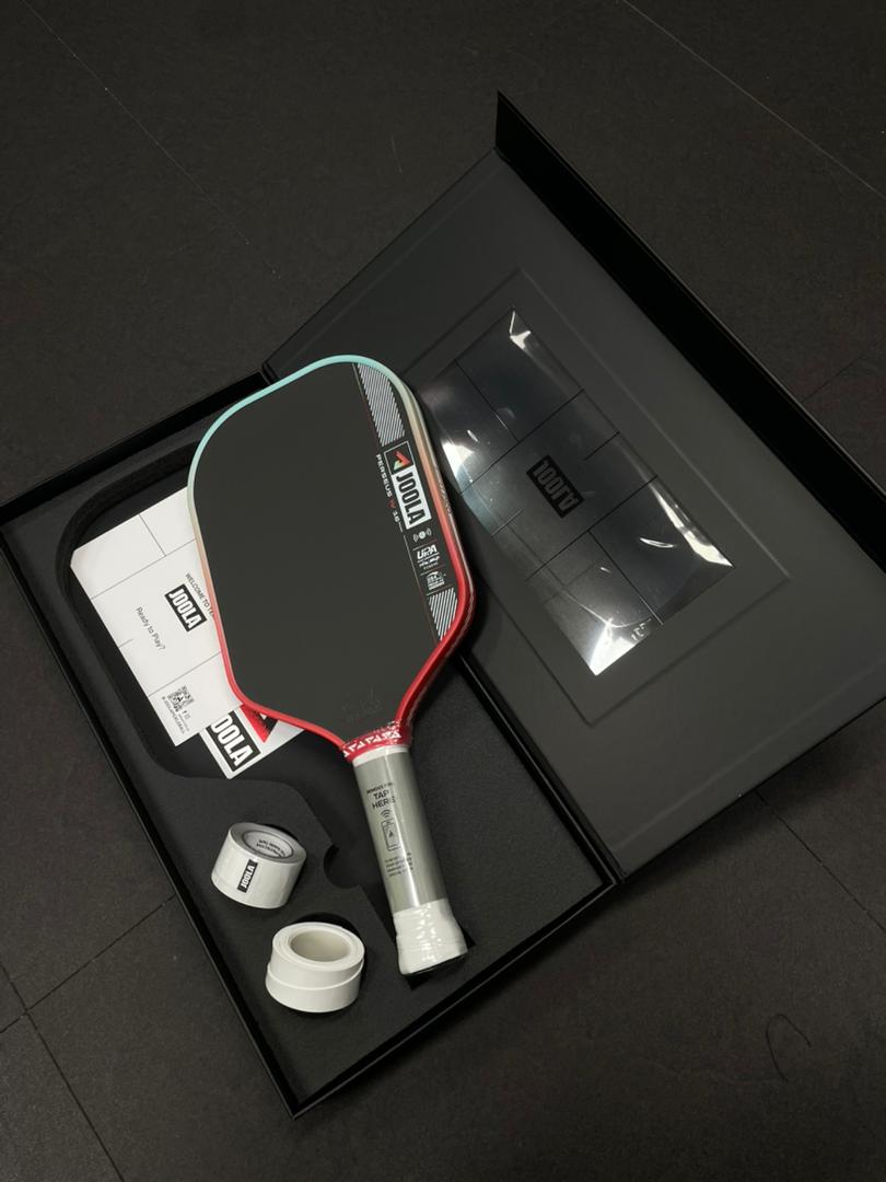 The JOOLA Perseus Pro IV Lime Pop Limited Edition Paddle includes 3 free overgrips and edgetapes inside the box.