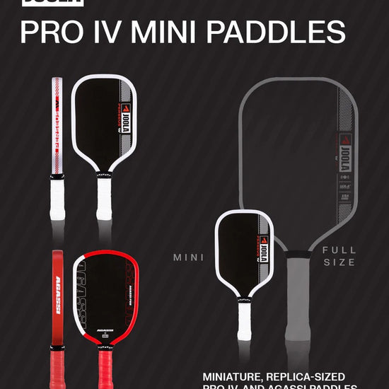 The JOOLA Pro IV and Agassi Pro paddles have been reimagined in miniature collector’s sizes—perfect for the pickleball passionate person in your life. Whether displayed on your office shelf or above your fireplace, these mini paddles let you show off your love for the game. All mini paddles are made with leftover Pro IV paddle material to prevent waste and promote sustainability.