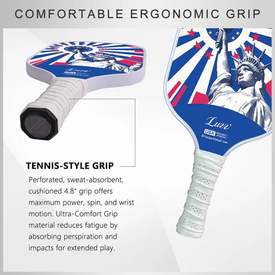Wave goodbye to wrist fatigue with our ultra-comfortable ergonomic grip. It absorbs sweat and minimizes impact from the paddle surface, ensuring you stay comfortable and maintain grip throughout marathon matches.