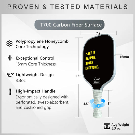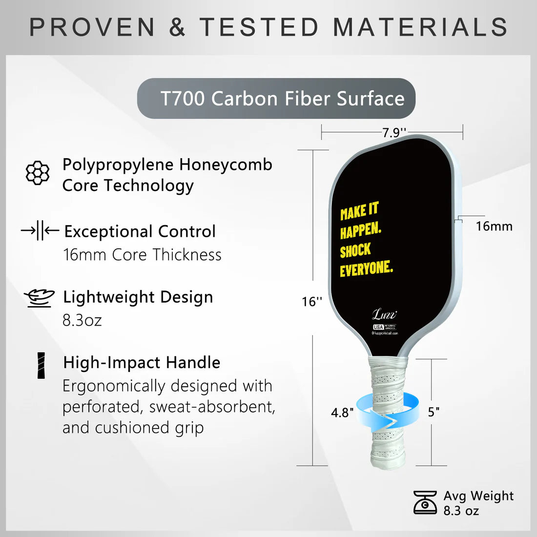 Luzzpickleball Shock Original Paddle (16mm) T700 Carbon Fiber