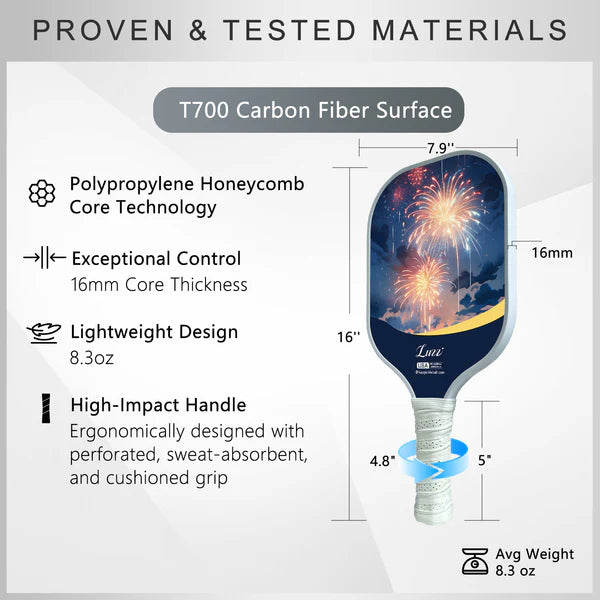 Arm yourself with the power of T700 carbon fiber! This premium material enhances the strength of your pickleball paddle, ensuring it stands up to the rigors of intense gameplay while keeping you light on your feet.