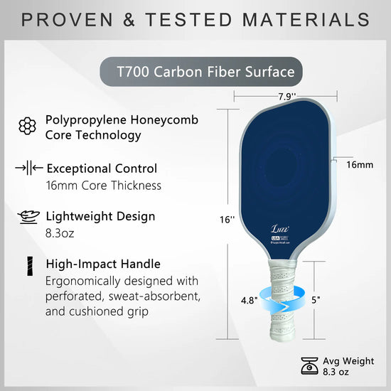 Arm yourself with the power of T700 carbon fiber! This premium material enhances the strength of your pickleball paddle, ensuring it stands up to the rigors of intense gameplay while keeping you light on your feet.