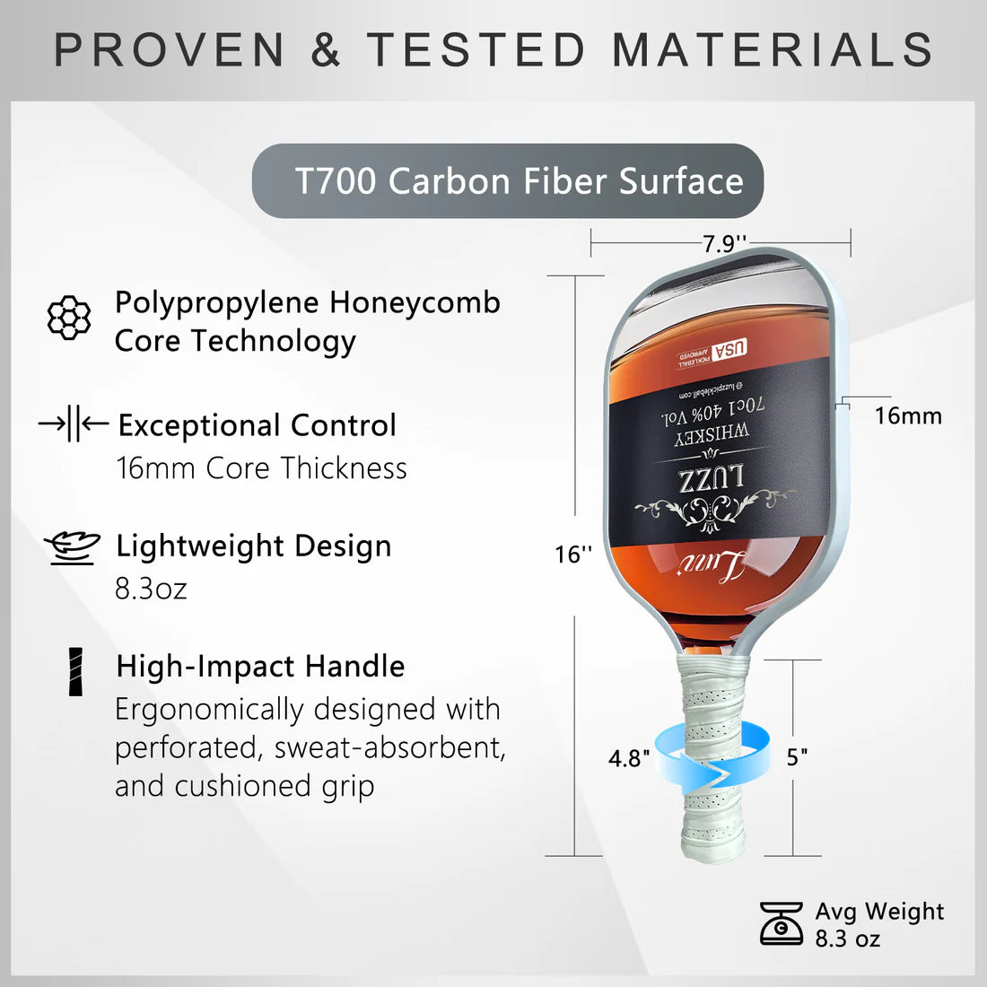 Luzzpickleball Whiskey Original Paddle (16mm) T700 Carbon Fiber