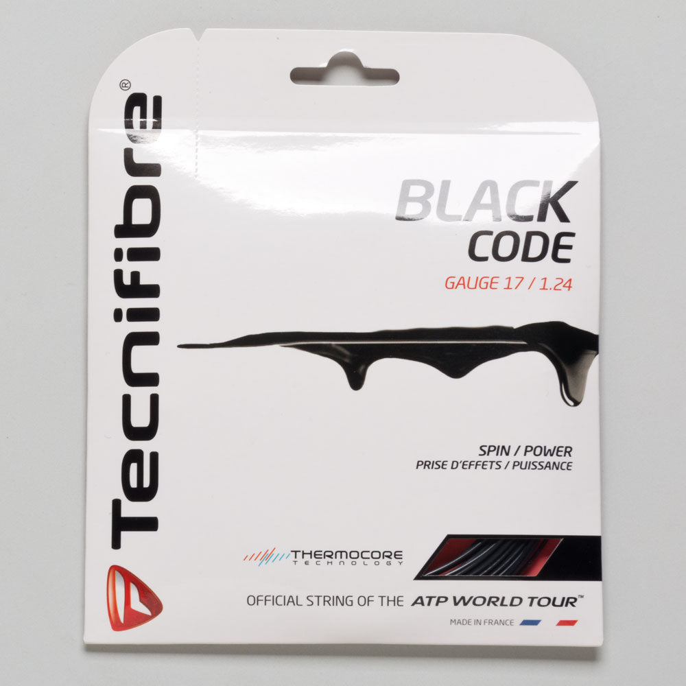 Black Code from Tecnifibre is a high quality copolymer monofilament polyester string with ThermoCORE technology for outstanding flexibility with the ultimate durability and spin potential.