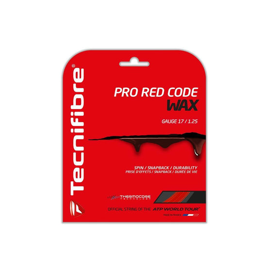 The Tecnifibre Pro Red Code WAX is the best combination of spin acceptance and durability. Features of the Tecnifibre Pro Red Code WAX: Co-polyester string. Larger and more homogeneous sweet spot and more tolerance for off-center hits. Spin acceptance, snapback and durability.